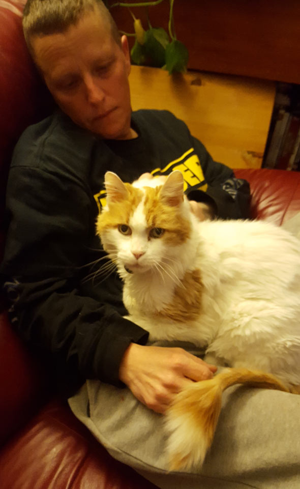 Ozzie is one of our "keeper cats", cats who are old or ill. And so we pay for life-time care with experienced colleagues who we absolutely know we can trust to always know what to do to make keepers happy and safe.