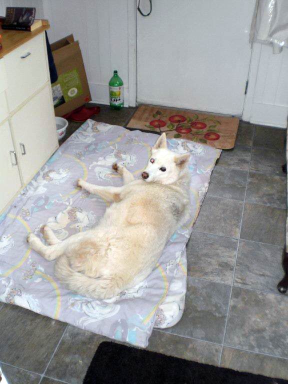 “In the year that I have had her, even through the hot summer, she has never slept outside one single night. I walk her every day, and she loves it. She is now spoiled rotten and I often wonder if she can remember her life before she came to me.”